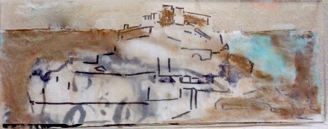 Acrylic, paper and fineliner on plexiglass Layered work 29 x 12 cm