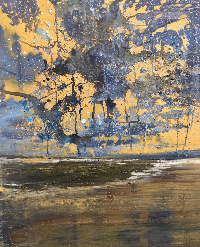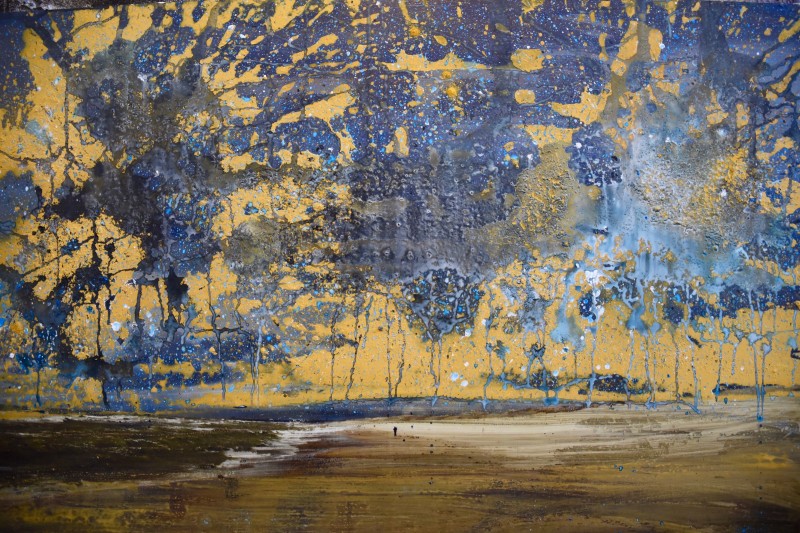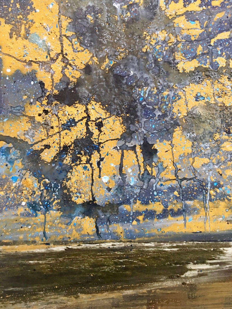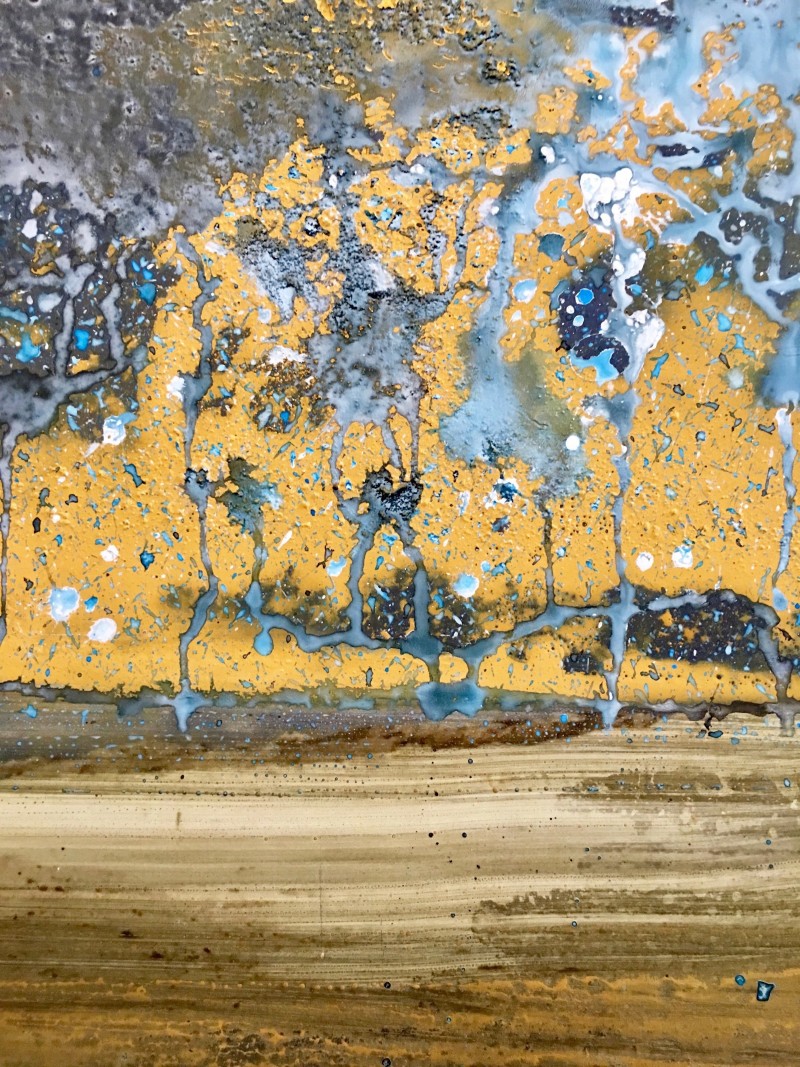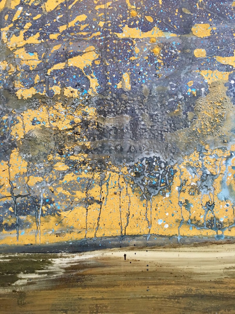 Acrylic, pigments and ink on a photo printed on dibond.