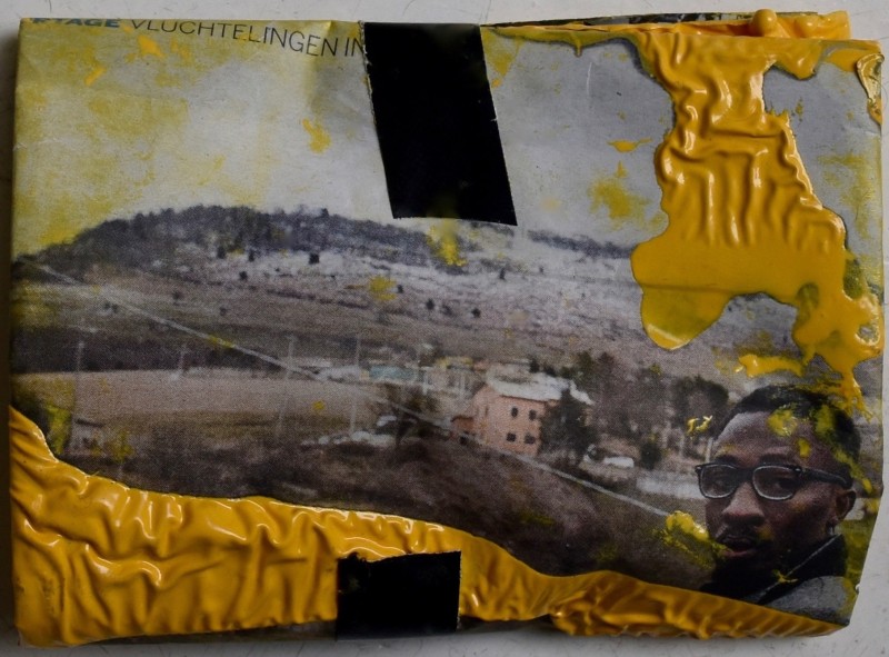 Acrylic and tape on newspaper